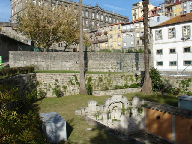 O Chafariz das Virtudes ou Fonte do Rio Frio é Monumento Nacional, construída em 1619, para aproveitamento das águas do Rio que nascia para os lados da actual Rua da Torrinha, em Cedofeita e que desagua no Douro. Agora por baixo da Alfandega, mas anteriormente na chamada Praia de Miragaia. Onde estão as casas arcadas, já referidas em escritos anteriores. Tem duas carrancas que vertiam a água para um tanque. Francamente, ou o tanque desapareceu destruído ou está subterrado. Um dia destes, com uma manobra menos feliz de um condutor, lá vão as carrancas também. Será que não era de proteger o pobre Monumento Nacional ?